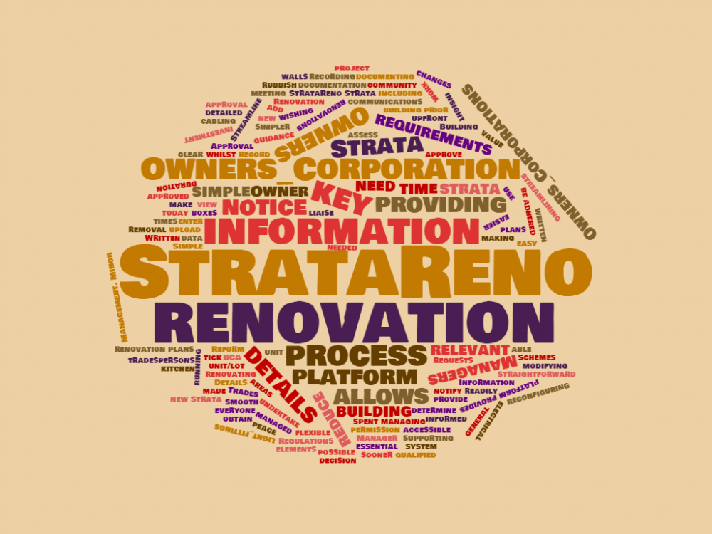 StrataReno is a new system for documenting and recording all types of renovations made to units within a Strata Scheme.